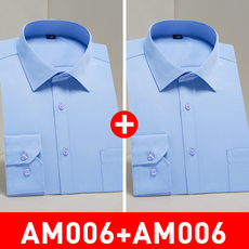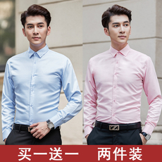 春季长袖衬衫男青年商务职业装工装纯蓝色衬衣男寸衫打底衫 2件装