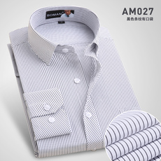 春季隐条纹白衬衫男长袖商务休闲职业工装白衬衣男西装寸衫工作服