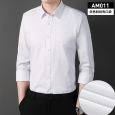 白色斜纹男士长袖衬衫竹纤维弹力免烫商务职业衬衣短袖工服正装