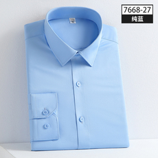 竹纤维蓝色弹力男士长袖衬衫商务正装休闲短袖白衬衣职业工装打底