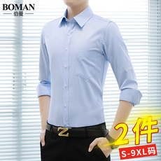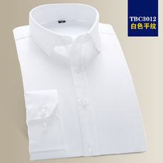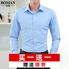 伯曼秋季长袖衬衫男青年商务修身职业工装正装纯白色西装衬衣扣领