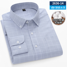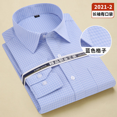 春秋男士商务休闲格子100%纯棉长袖衬衫中年免烫抗皱职业潮流衬衣