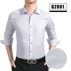 春季无口袋衬衫男长袖商务休闲职业工装纯色白衬衣男士西装打底衫
