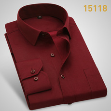 春季衬衫男长袖商务休闲职业工装酒红色斜纹衬衣男打底寸衫有大码