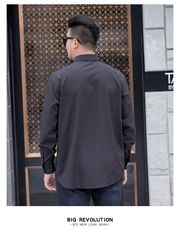 男士韩版潮流黑色立领长袖衬衣宽松大码职业正装商务白衬衫短袖寸
