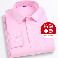 春季粉色衬衫男长袖商务休闲职业工装纯色西服衬衣男寸衫新郎伴郎