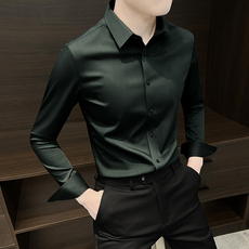 军绿色高级感弹力垂顺白衬衫男长袖修身免烫丝滑抗皱商务正装休闲