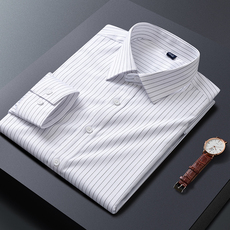 白色细条纹弹力衬衫男长袖春秋夏季男士职业正装免烫修身韩版潮流