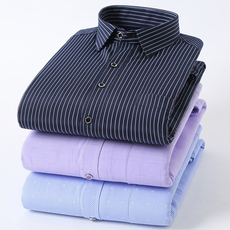 2024春季新款中老年衬衫男长袖商务休闲时尚条纹衬衣男打底衫大码