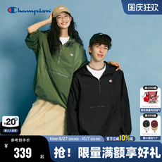 Champion冠军情侣外套女春秋休闲连帽半拉链轻薄休闲夹克男美式