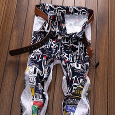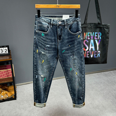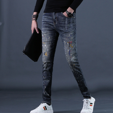 秋季款裤子潮牌高端涂鸦彩绘印花时装牛仔裤男修身小脚百搭欧美风