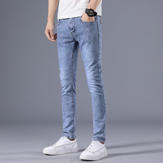 2025年夏季新款高端浅蓝色男士牛仔裤高档修身小脚弹力休闲裤子男
