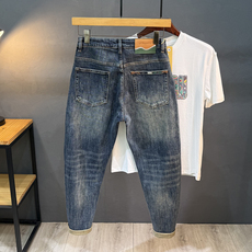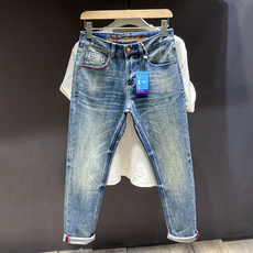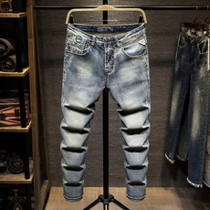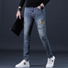 2025新款刺绣牛仔裤男潮流复古做旧轻奢时尚修身小脚弹力高端裤子