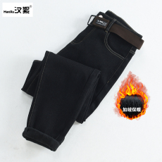 吉普牛仔裤男士秋冬新款弹力修身小脚潮牌百搭加绒加厚休闲长裤子