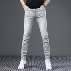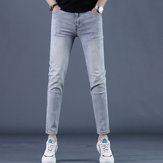 2025新款夏季浅灰男士牛仔裤高弹力修身显瘦小脚裤薄款休闲长裤子