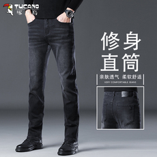 啄木鸟高端牛仔裤男士2025春秋新款修身小脚弹力百搭休闲长裤子