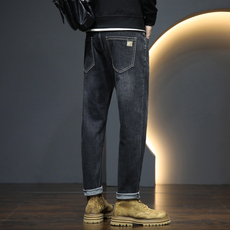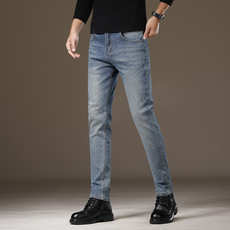 高端柔软面料2024年新款牛仔裤男秋季厚款男士潮流修身小脚长裤子