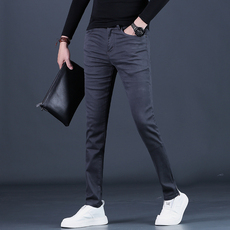 秋季新款弹力牛仔裤男士修身小脚裤百搭韩版潮流休闲长裤灰色裤子