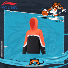 李宁童装儿童运动上衣2025春秋新款宽松休闲印花套头连帽男孩卫衣