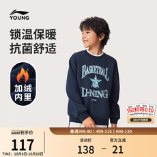 李宁儿童加绒抑菌卫衣男童装小大童青少年运动休闲百搭保暖上衣
