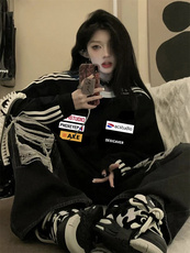 SLAMBLE CLO.新款套头帽衫男休闲运动连帽卫衣侧边条潮流美式上衣