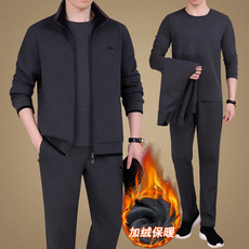 中老年运动服套装男春秋冬季加绒加厚三件套宽松大码休闲装爸爸装