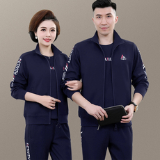 中老年情侣装外套秋装休闲运动服套装男女春秋中年爸妈减龄三件套