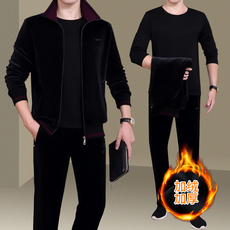 中老年人男士春秋冬季宽松运动套装爸爸休闲大码三件套加绒运动服