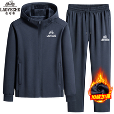 稻草人冬季中老年男运动服套装连帽羊羔绒加绒加厚爸爸休闲棉套装