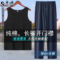 申本爸爸夏季套装中老年男士薄款全棉背心长裤爷爷休闲运动两件套