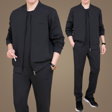 潮流时尚运动休闲服外套套装男士春秋季三件套2025新款中老年套装