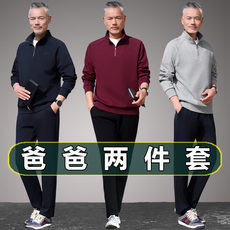 中老年爸爸秋装运动服休闲外套男士春秋大码中年减龄卫衣两件套装