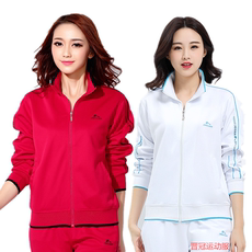 运动服套装女春秋长袖两件套秋季中老年男健身操立领团体情侣体操