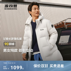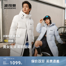 波司登2025冬季新款羽绒服男女同款过膝长款90绒子保暖连帽运动风