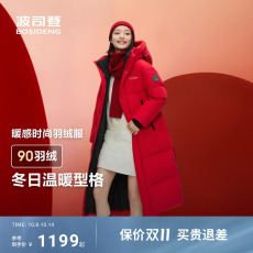 【联名款】波司登冬季长款连帽时尚运动厚羽绒服红色外套男女同款