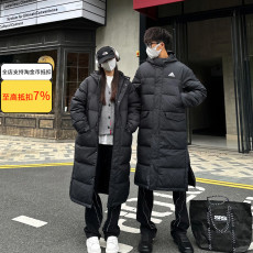 阿迪达斯男女同款过膝加厚长款运动保暖连帽羽绒服 GK0664 GK0665