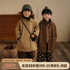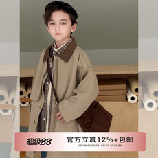 OPCP儿童复古立领风衣女童秋冬新款英伦风百搭大衣男童中长款外套