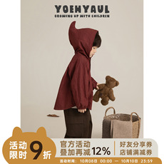儿童柔软山系休闲风衣男童纯色春秋帅气休闲连帽拉链开衫潮酷外套
