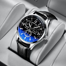 三眼新款时装手表休闲玻璃皮带商务男士手环大表盘男士精准腕表
