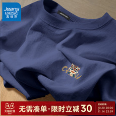 班尼路男生t恤短袖夏季简约风纯色半截袖青少年重磅纯棉宽松体恤
