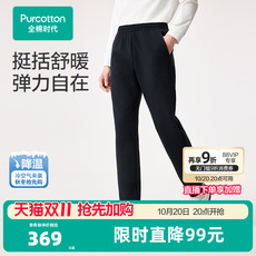 全棉时代休闲裤男士裤子空气层绒感长裤百搭束脚黑色裤子运动裤新