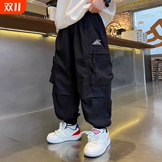 李宁儿童运动裤男童2025新款秋黑色宽松束脚青少年百搭休闲卫裤