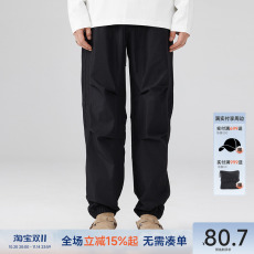 快鱼2025年秋新款百搭休闲裤男士宽松束脚户外山系黑色梭织运动裤