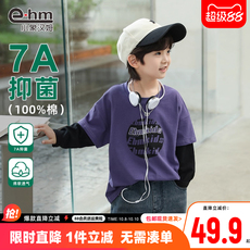 小象汉姆童装男童长袖t恤儿童打底衫假两件纯棉2025秋装新款洋气