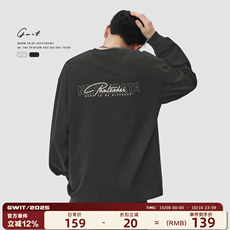 GWIT 美式高街重磅纯棉春秋内搭上衣印花体恤潮牌打底衫长袖T恤男