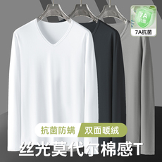 莫代尔棉长袖t恤男装2025新款纯色V领内搭打底衫抗菌防螨薄款秋衣