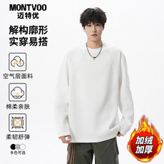 迈特优加绒长袖t恤男士秋冬季2025新款宽松美式解构打底衫上衣服