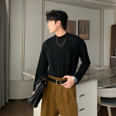 Hualun男士德绒内搭打底衫半高领T恤男oversize潮流时尚长袖上衣