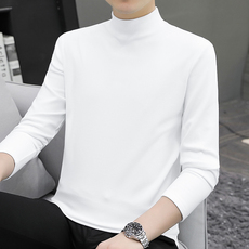 秋冬款半高领纯棉T恤男长袖内搭弹力体恤韩版修身中领打底衫上衣