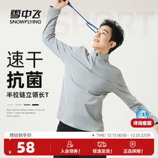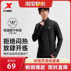 特步长袖T恤男士2025秋季新款户外半拉链针织衫男徒步运动速干衣